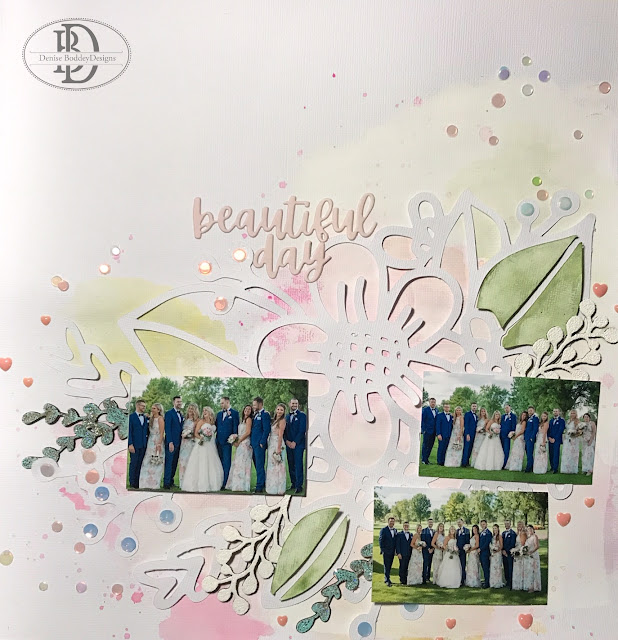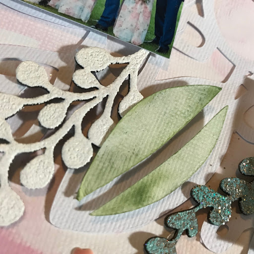 Hi, it's Ashley here today with a layout to share! I started my page with a cut file and I wanted to do some mixed media between my white cut file and my white background. I chose two packages of chipboard to feature on this page. I have the sprouts chipboard and the small button leaves.