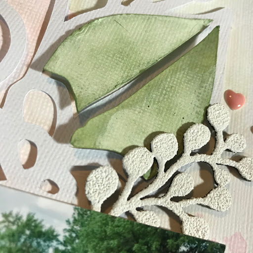 I share a process video HERE where you can watch how my background develops and how I colored my leaves. I heat embossed my chipboard pieces using WOW! embossing powders. I colored my leaves with Shimmerz.