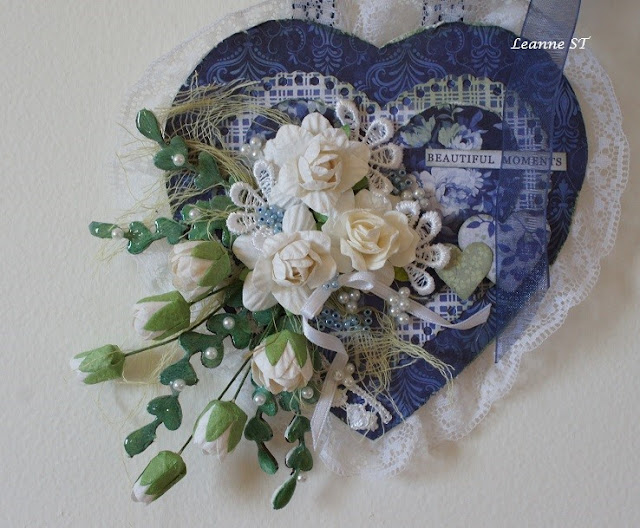 I have embellished the heart shapes with die cut shapes, punch out paper shapes, pearls, seed beads, diamanté beads and paper flowers.