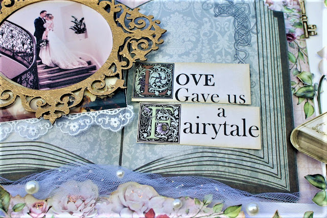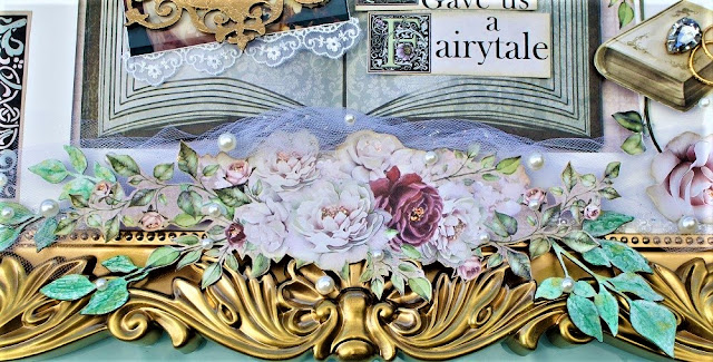 I then fussy cut out flowers from Nature Romance , Enchanted Florals and Glory pattern paper which is from the Elegance collections. I layered all the elements up.