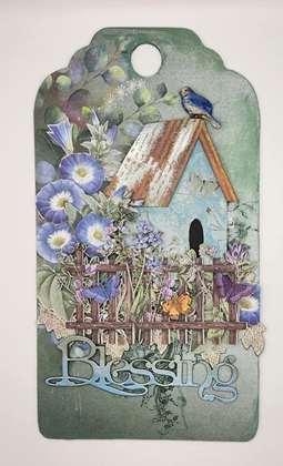Bird Feeder here we come. This month I have made a X-large tag using some paper from the Elegance Paper Pack and the flat birder feeder chipboard.