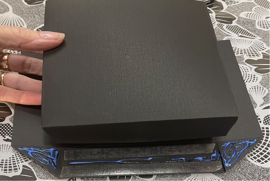 Cut a black strip of cardstock from your left-over cardstock 30cm long x 2.5 cm W, this is for your handle.